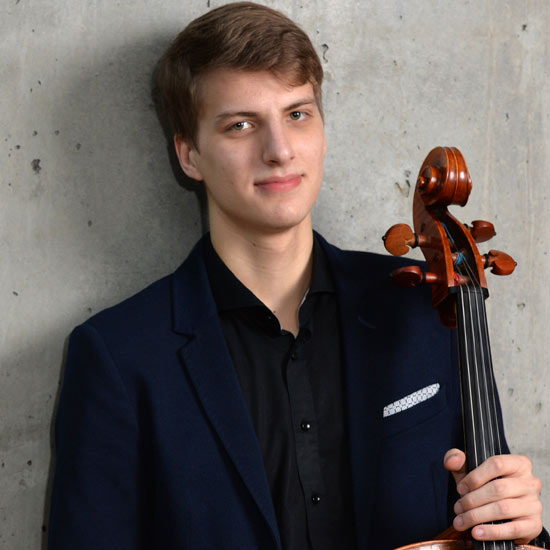 He currently plays an Italian cello crafted by Francesco Ruggeri (Cremona, 1674) and uses a bow made by Victor Fetique, both graciously on loan to him by the Deutsche Stiftung Musikleben.
